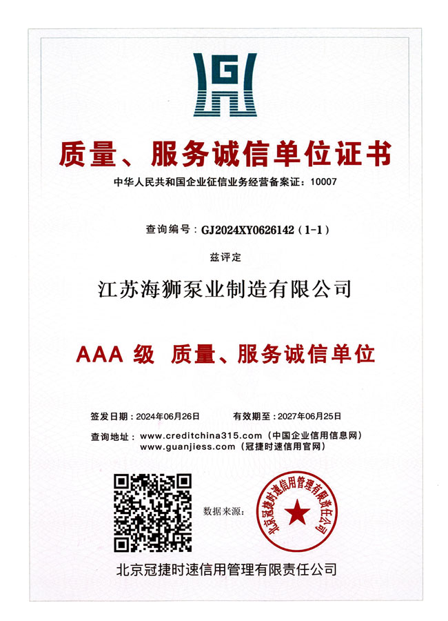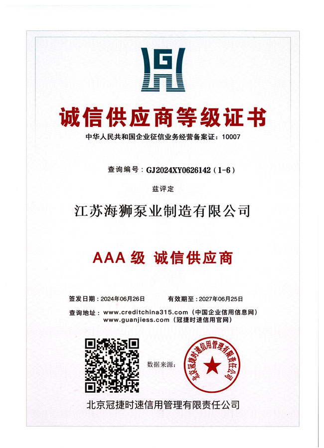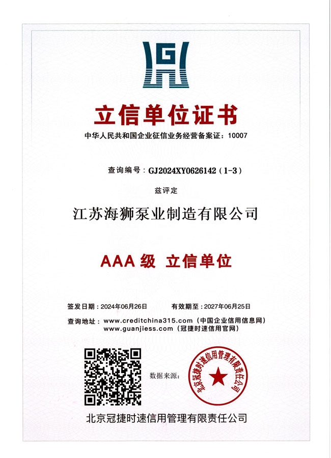 江(jiāng)蘇海(hǎi)獅泵業製造有限公司成立於(yú)1977年,由上海水(shuǐ)泵廠石油化工泵分廠、江蘇新亞化工機械(xiè)總廠(chǎng)聯合組(zǔ)建而來,是從事立、臥式、單、雙(shuāng)吸離心泵、BB係列及各種結(jié)構型式的多級泵等石油化工泵、核級泵專(zhuān)業製造的中型企業,是(shì)中(zhōng)石化物資(zī)資源市場成員廠、中國石油天(tiān)然氣集團(tuán)公司煉化備(bèi)品配件一級網絡成員單位,ISO9001質量體係認證(zhèng)企(qǐ)業,民(mín)用核安全設備設計和(hé)製造許可企業。公司集機械製造、冷熱加工、熔模鑄造、科研生產於一體(tǐ)。榮獲“江蘇省明星企業”、“部(bù)級先進企(qǐ)業”、“江蘇省星火技(jì)術(shù)密集區重點企業”、“江蘇省特級(jí)AAA(資信等級)”、“泰州市重合同、守信用企(qǐ)業”、“江(jiāng)蘇省(shěng)著名(míng)商標”等榮譽稱(chēng)號。